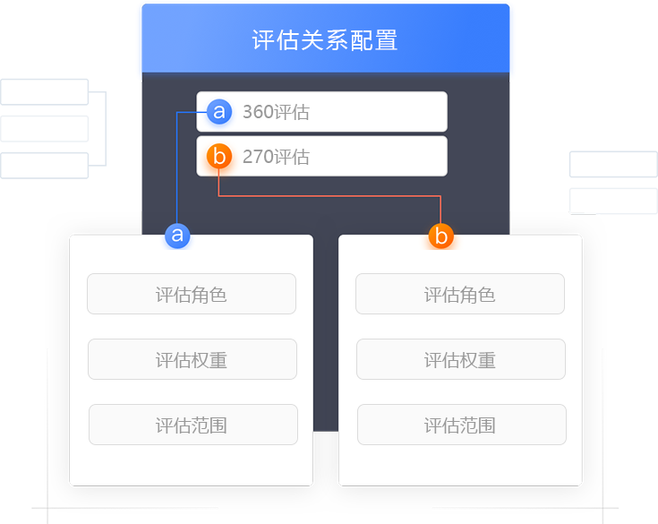 不但支持360评估,也支持270等各种评价关系的配置,每个被评者的评价角色、评价权重及评价范围可灵活配置;