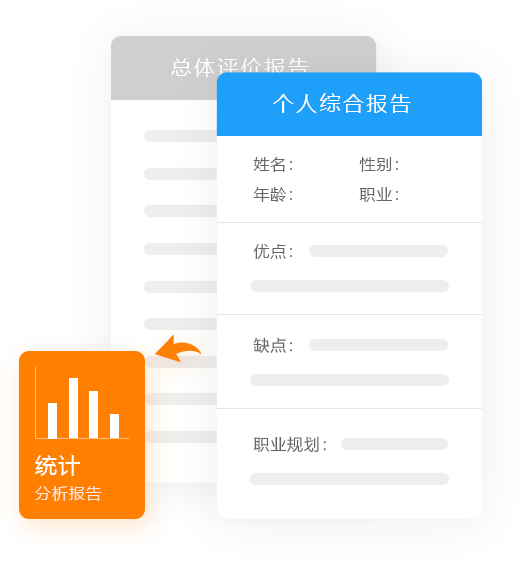可自定义个人综合报告及总体评价报告模板,可按报告模板自动生成统计、分析报告;