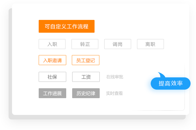 支持自定义工作流程,支持派遣员工的入、转、调、离等流程的在线办理,支持向员工发送入职邀请,让员工自行在线填充员工登记表,提高了工作协同效率;支持社保、工资的在线审批,可实时查看工作进展以及流程历史记录。