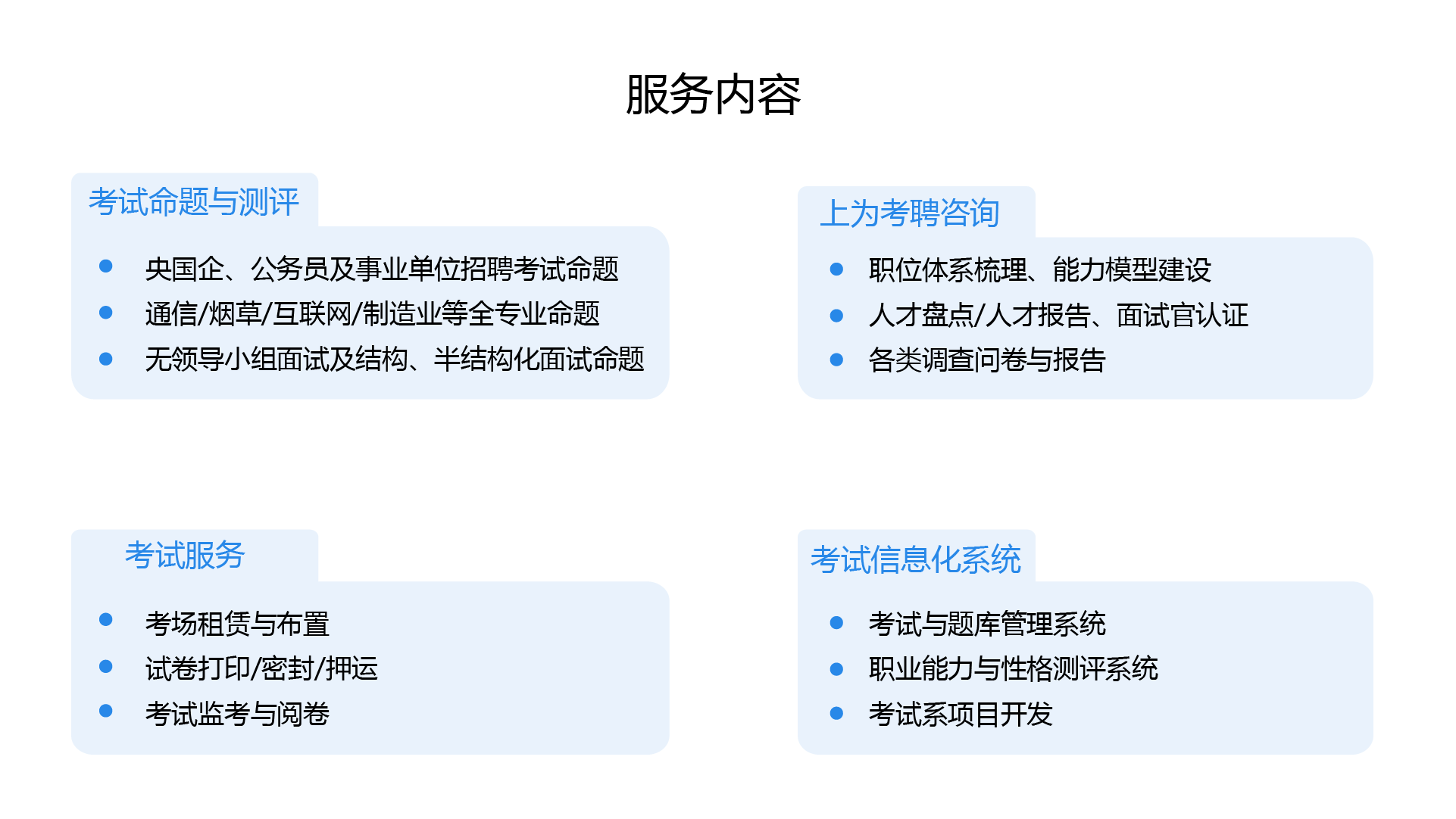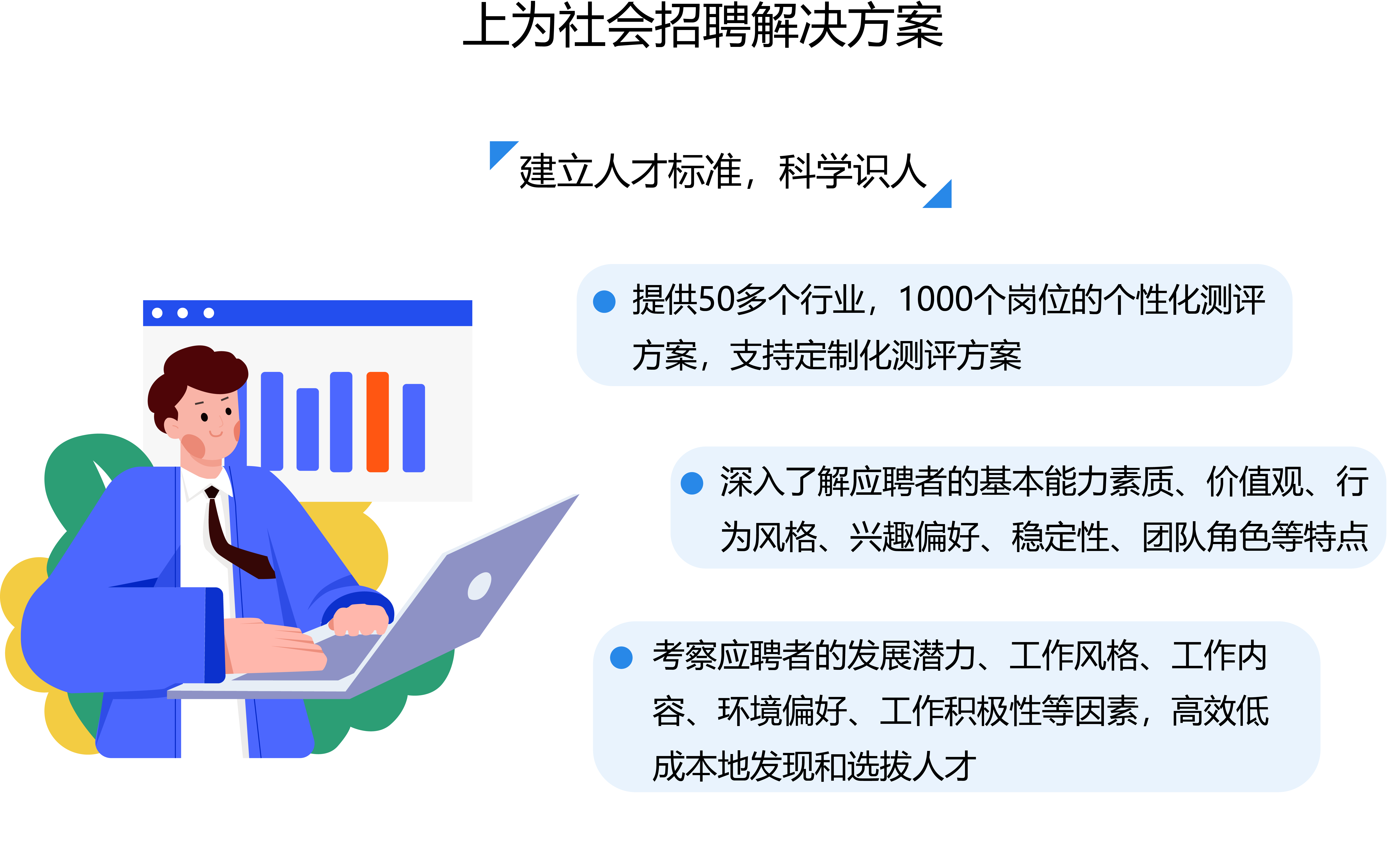 上为咨询系列产品是帮助企业在社会招聘中有效识别人才并通过测评为企业选对、留住、用好人才